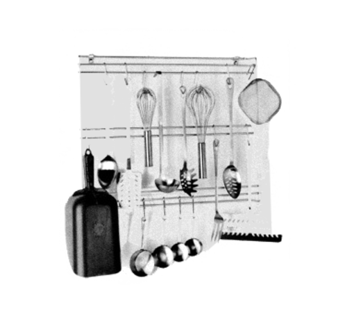 Amco Utensil Rack, wall mounted, 24" long x 18" high x 3" deep, with 20 hooks, stainless steel