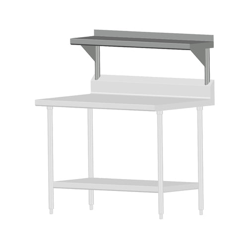 Universal Stainless Cantilever Shelf, 16/300 series stainless steel, 14" deep, 2"H rear up-turn, factory installation required, shelves 84" or longer require 3 supports, priced per linear foot, NSF