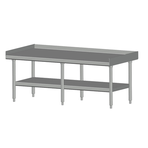Universal Stainless Countertop Cooking Equipment Stand, 60" x 30", 24"H, 2"H rear up-turn on sides & rear, open base with bottom shelf, 14 gauge stainless steel top, legs & undershelf