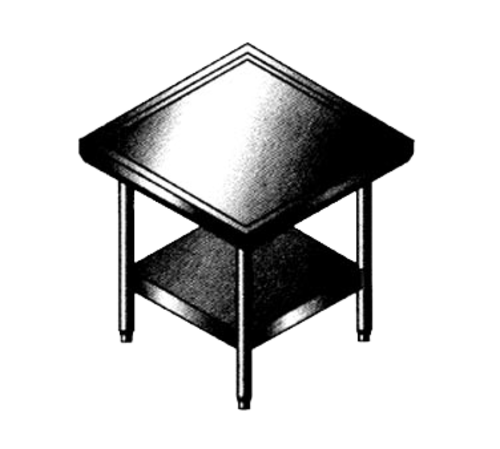 Universal Stainless Mixer Stand, open base with bottom shelf, 30" x 36", 24"H, raised marine edge, stainless steel top & legs, adjustable bullet feet