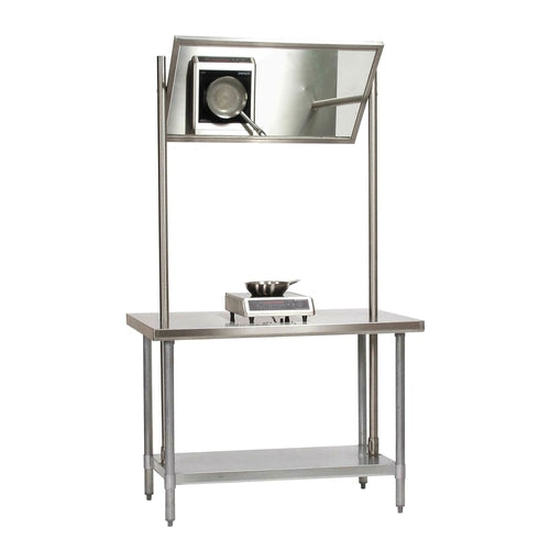 Demo Table, 60"W x 30"D x 94"H, overhead mirror, stainless steel top, galvanized undershelf & legs, NSF