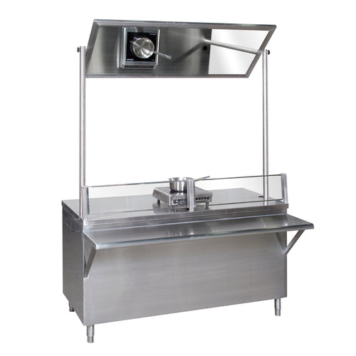 Demo Table, cabinet base, 60"W x 30"D x 94"H, overhead mirror, (2) sliding doors on operator side, stainless steel top, undershelf, & legs, NSF