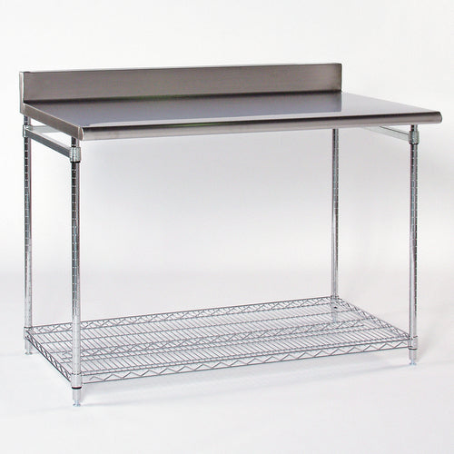Standard Prep Work Center, stainless steel top with 4" backsplash, (1) undershelf, 35" working height