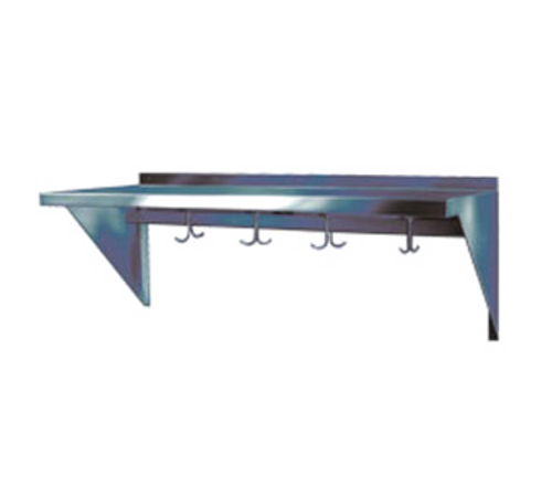Wall Mounted Shelf, 84"W x 10", all welded 16/304 stainless steel construction, with pot rack & hooks, NSF (contact factory for price)