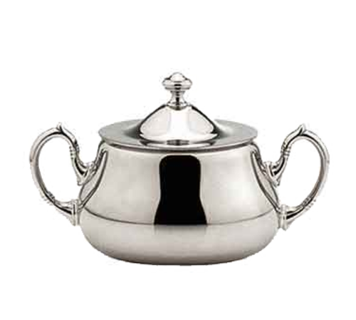 Sugar bowl, 9 oz. (0.25 liter), with lid, double handled, 18/10 stainless steel, silver plate finish, Tradition by Hepp