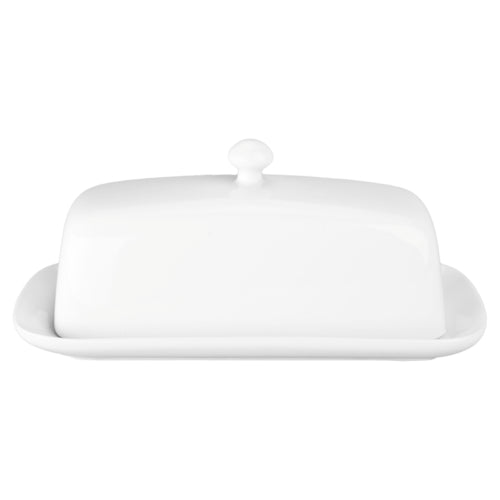BIA Cordon Bleu® Butter Dish, 8-1/4"L, rectangular, with cover & knob, dishwasher/microwave/oven safe, porcelain, white (4 each minimum order) (NET)