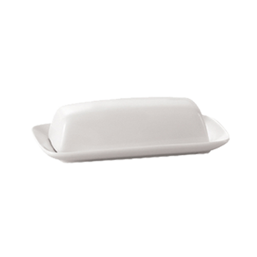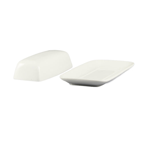 Accessories Butter Dish Set, includes: (1) 8-1/4"L x 4-1/4"W x 3/4"H, rectangular dish and (1) 6-3/4"L x 3"W x 1-7/8"H rectangular cover, dishwasher, oven and microwave safe, porcelain, Super White (Sold by case)