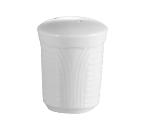 Corona Pepper Shaker, 2-1/2" dia. x 2-3/4"H, round, embossed, dishwasher, oven and microwave safe, porcelain, Super White (Sold by case)