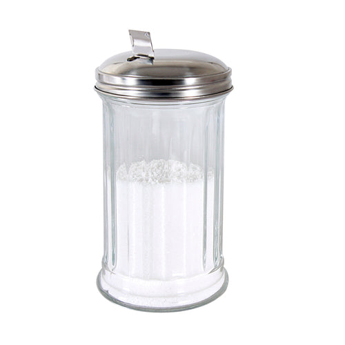 Sugar Pourer, 12 oz., with stainless steel flat top, lead-free glass (Qty Break = 4 dozen)