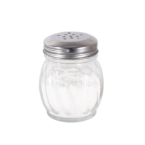 Cheese/Spice Shaker, 6 oz., with stainless steel perforated top, lead-free glass (Qty Break = 5 dozen)