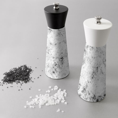 Pepper Grinder, 2-1/4" dia. x 6-3/4"H, break, chip, stain & scratch resistant, dishwasher safe, melamine with black top and faux horizon marble base, Horizon Slate
