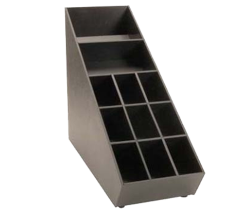 Dispense-Rite® Condiment Organizer, 16-1/2" H x 8"W x 21"D, narrow, removable section dividers, polystyrene, black