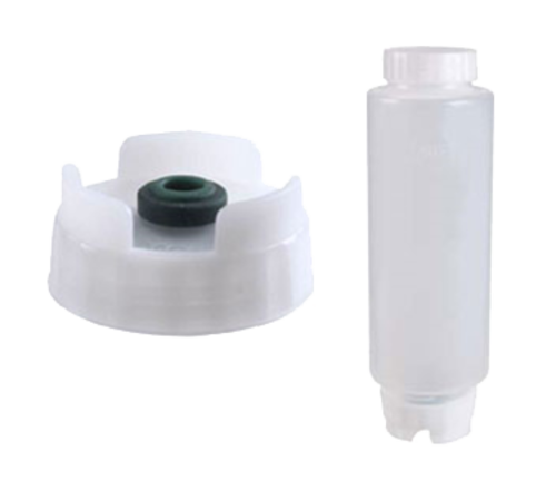 FIFO BOTTLE™, multi-purpose, 16 oz., dispensing cap with small sized green valve, for thin sauces or fine beads of sauce, clear plastic, NSF certified