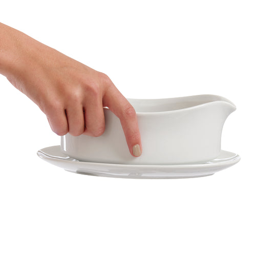 HIC Gravy Boat, 18 oz., with 8" attached saucer, oven-to-table fine porcelain, safe for oven, broiler, microwave, freezer & dishwasher
