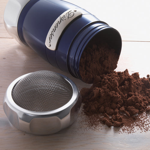 Marcato Atlas Dispenser, stainless steel mesh screen, anodized aluminum, blue