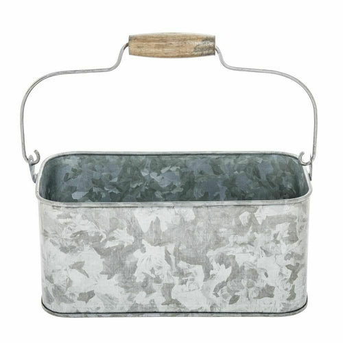 Table Caddy, 9" x 5" x 4-3/4", rectangular, wood/wire drop handle, dishwasher safe, galvanized metal (food safe)