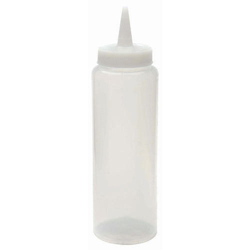 Squeeze Bottle, 8 oz., 2-3/4" dia. x 5"H, round, wide-mouth, dishwasher safe, polyethylene, clear