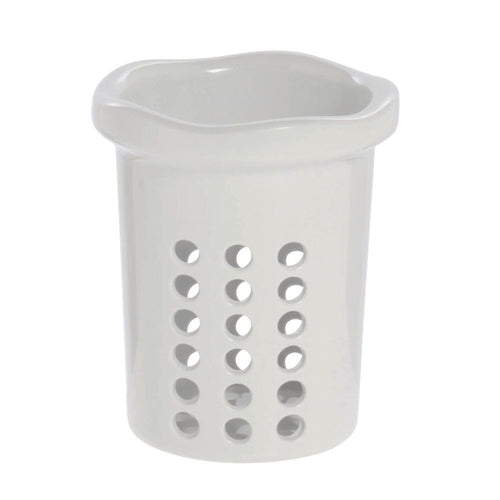 Curveware Bain Marie Condiment Cylinder, 4-11/16" dia. x 5-1/2"H, round, perforated side walls, scalloped top, chip/scratch/break-resistant, dishwasher safe, melamine, white, NSF