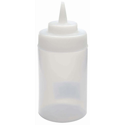 Squeeze Bottle, 12 oz., 2-3/4" dia. x 6-1/2"H, round, wide-mouth, dishwasher safe, polyethylene, clear