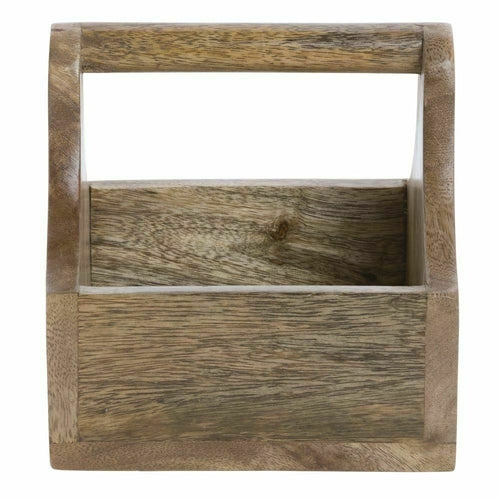 Table Caddy, 6" x 5-3/4" 6"H, rectangular, top handle, mango wood, natural finish