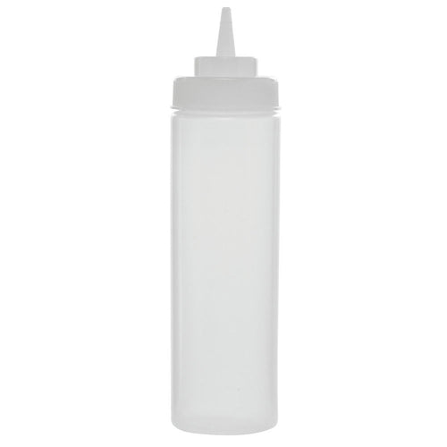 Squeeze Bottle, 24 oz., 2-3/4" dia. x 10"H, round, wide-mouth, dishwasher safe, polyethylene, clear