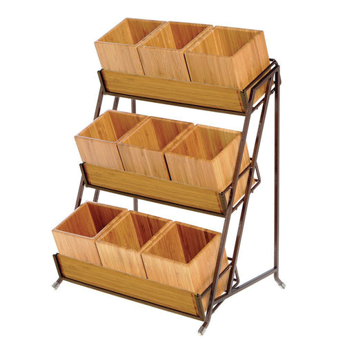 Condiment Organizer, 3-tier, 13" x 9-1/2" x 17-1/2"H, rectangular, includes: (9) bamboo inserts & espresso metal frame