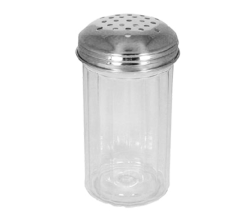 Cheese Shaker 12 oz., 3" dia. x 5-3/4"H, round, perforated top, stainless steel top, plastic base, Holloware