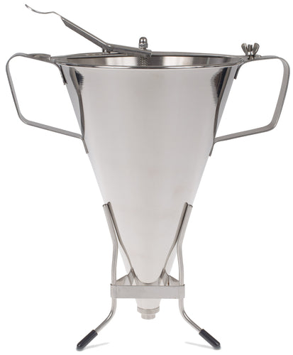 Kwik Max XL Funnel, 111 oz. capacity, 15"H x 8"W, 15mm nozzle, cone hopper, oversized design for thicker sauces, includes (1) stand, stainless steel