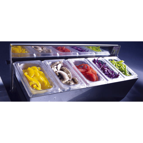 Condibox, 23"L x 8"W x 5-1/2"H, includes: (5) plastic containers, (2) cooling blocks, stainless steel