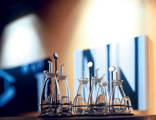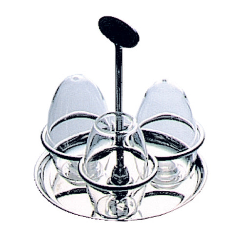 Salt & Pepper with Toothpick Container Set, includes: (3) 2-3/4 oz. glass containers, 5-1/2"H, 18/10 stainless steel caddy, dishwasher safe, Grand Hotel