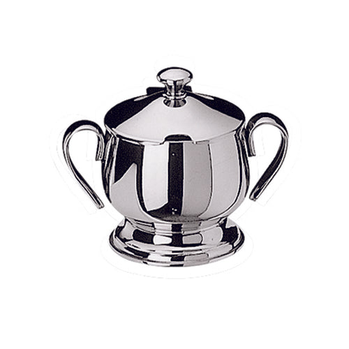 Sugar Bowl, 6-cups (9-1/8 oz.), round, with lid, handles & base, dishwasher safe, 18/10 stainless steel, Bombata