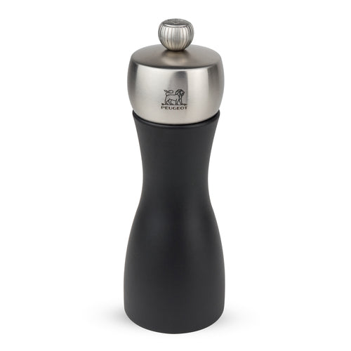 Fidji Salt Mill, 6" (15 cm), stainless steel grinding mechanism first shatters then grinds rock salt or dry sea salt, comes filled with rock salt from Germany, PEFC-certified beech wood & stainless steel, black, matte finish (made in France) (limited lifetime warranty on mechanism, contact factory for details)