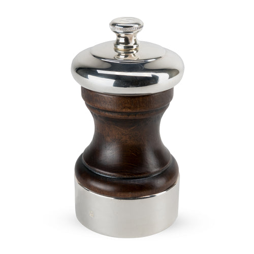 Palace Salt Mill, 4" (10 cm), stainless steel grinding mechanism first shatters then grinds rock salt and dry sea salt, adjustable from coarse to fine grinds with a turn of the knob, polished wood/silver plated (made in France) (limited lifetime warranty on mechanism, contact factory for details)