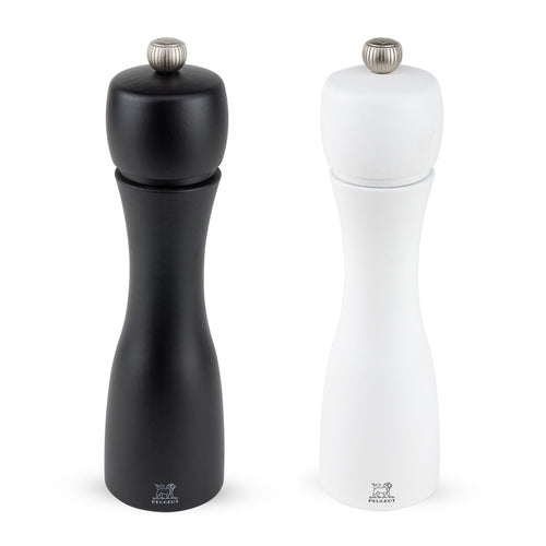 Tahiti Pepper & Salt Mill Duo, 8" (20 cm), comes filled with pepper and salt, PEFC-certified beech wood, black & white (made in France) (limited lifetime warranty on mechanism, contact factory for details)