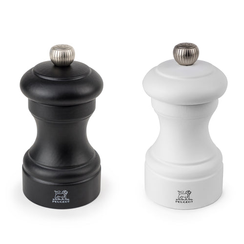 Bistro Duo Pepper & Salt Mill, 4" (10 cm), comes filled with pepper and salt, PEFC-certified beech wood, beech wood, black & white made in France) (limited lifetime warranty on mechanism, contact factory for details)