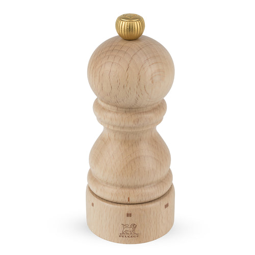Paris Pepper Mill, 4-3/4" (12 cm), with u'Select patented grind control system, helix-shaped double row of teeth mechanism, patented treatment protects steel mechanism from corrosion, (6) pre-defined levels of grinds, comes filled, PEFC-certified beech wood, natural (made in France) (limited lifetime warranty on mechanism, contact factory for details)