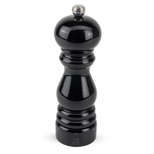 Paris Salt Mill, 7" (18 cm), with u'Select patented grind control system, helix-shaped double row of teeth mechanism, patented treatment protects steel mechanism from corrosion, (6) pre-defined levels of grinds, comes filled, PEFC-certified beech wood, black lacquer (made in France) (limited lifetime warranty on mechanism, contact factory for details)