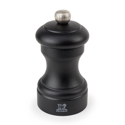 Bistro Salt Mill, 4" (10 cm), helix-shaped double row of teeth mechanism, patented treatment protects steel mechanism from corrosion, comes filled, PEFC-certified beech wood, black, matte finish (made in France) (limited lifetime warranty on mechanism, contact factory for details)