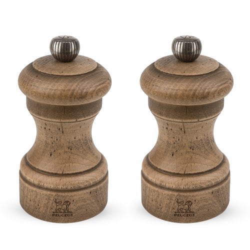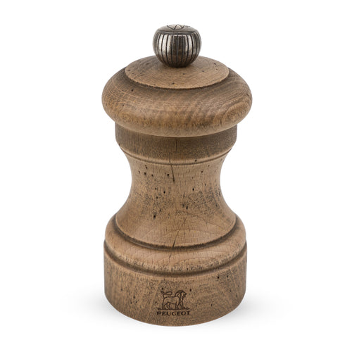Antique Collection Bistro Salt Mill, 4" (10 cm), adjustable steel mechanism from coarse to fine grind, PEFC-certified beech wood from France, matte antique finish (limited lifetime warranty on mechanism, contact factory for details)