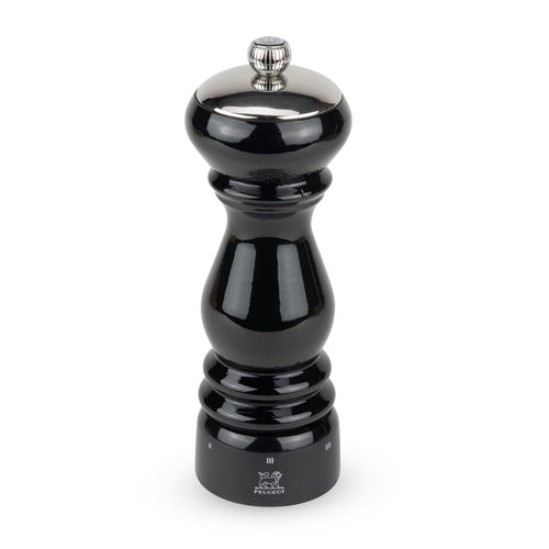 Paris Icône Pepper Mill, 7"H (18 cm), stainless steel/walnut wood, black lacquer