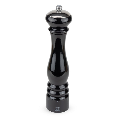 Paris Icône Salt Mill, 12"H (30 cm), stainless steel/walnut wood, black lacquer