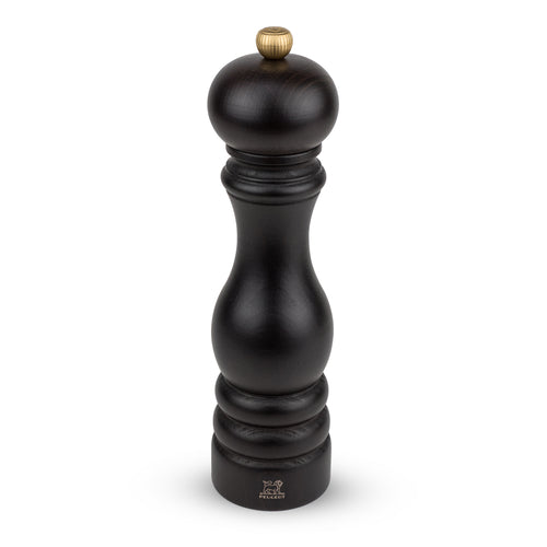 Paris Pepper Mill, 8-3/4" (22 cm), helix-shaped double row of teeth mechanism, patented treatment protects steel mechanism from corrosion, adjustable from coarse to fine grinds, PEFC-certified beech wood, chocolate (made in France) (limited lifetime warranty on mechanism, contact factory for details)