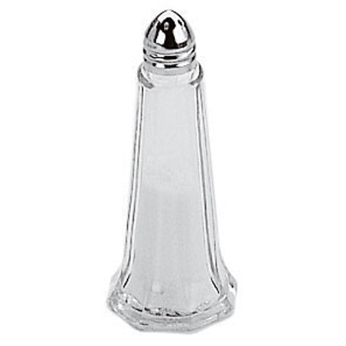 Salt/Pepper Shaker, 1 oz., 1-3/4" dia. x 4-1/2"H, tower-shaped, stainless steel top, dishwasher safe, glass, Paderno, Tabletop