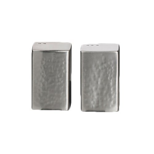 Salt & Pepper Set, 1-1/4"L x 2"H, rectangular, 18/10 stainless steel, hammered, Creations (minimum = case quantity) (stock item)