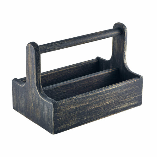 Table Caddy, 9-7/8"L x 6-1/4"W x 7-1/8"H, rectangular, with carry handle, wood, black wash, Genware London, GW Wood (minimum = case quantity) (stock item) (6 each per case)