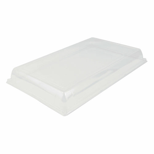 Glazz Collection Lid, GN 1/1 size, 21-1/4"L x 13-1/2"W x 2-1/2"H, fits GL1/1B, rectangular, disposable, recycled PET, clear, Dalebrook (25 each per pack)