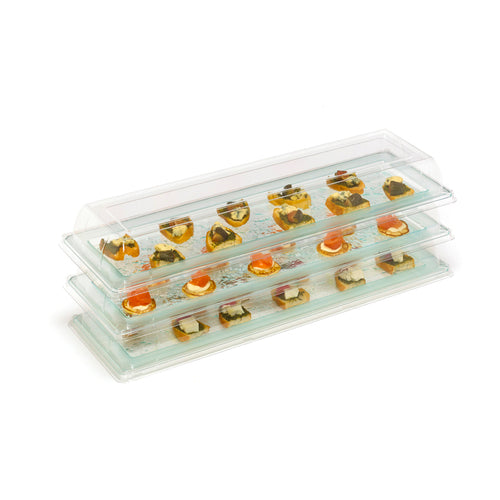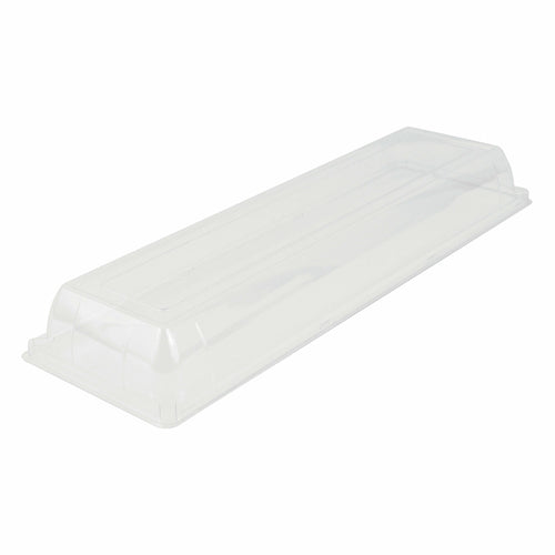 Glazz Collection Lid, GN 2/4 size, 21-1/4"L x 7"W x 2-1/2"H, fits GL11/2B, rectangular, disposable, recycled PET, clear, Dalebrook (25 each per pack)