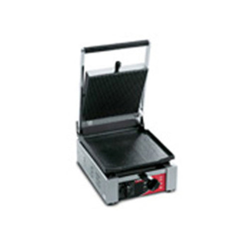 Sirman Mini Panini Grill, grooved top & grooved bottom, 10" x 10", timer up to 15-min, removable drip tray, includes scraping brush, stainless steel body, 1700 watts, 120v/60/1-ph, 20 amps, ETL