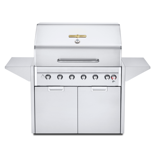 Crown Verity Estate Elite 42" Cart Grill, individually controlled burners, includes roll dome, adjustable bun rack, (2) end shelves, (2) doors & heavy duty cover