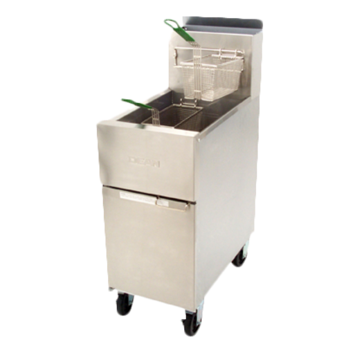 Super Runner Value Fryer, gas, floor model, 50 lb. capacity, durable temperature probe, millivolt control system (requires no electrical hookup), includes: rack-type basket support, basket hanger & twin baskets, stainless steel frypot, front & door, aluminized sides, 6" adjustable steel legs, 120,000 BTU, CSA, NSF, TUV